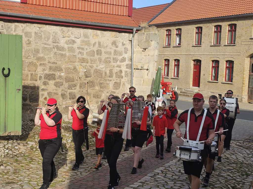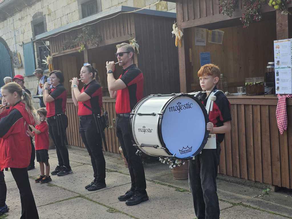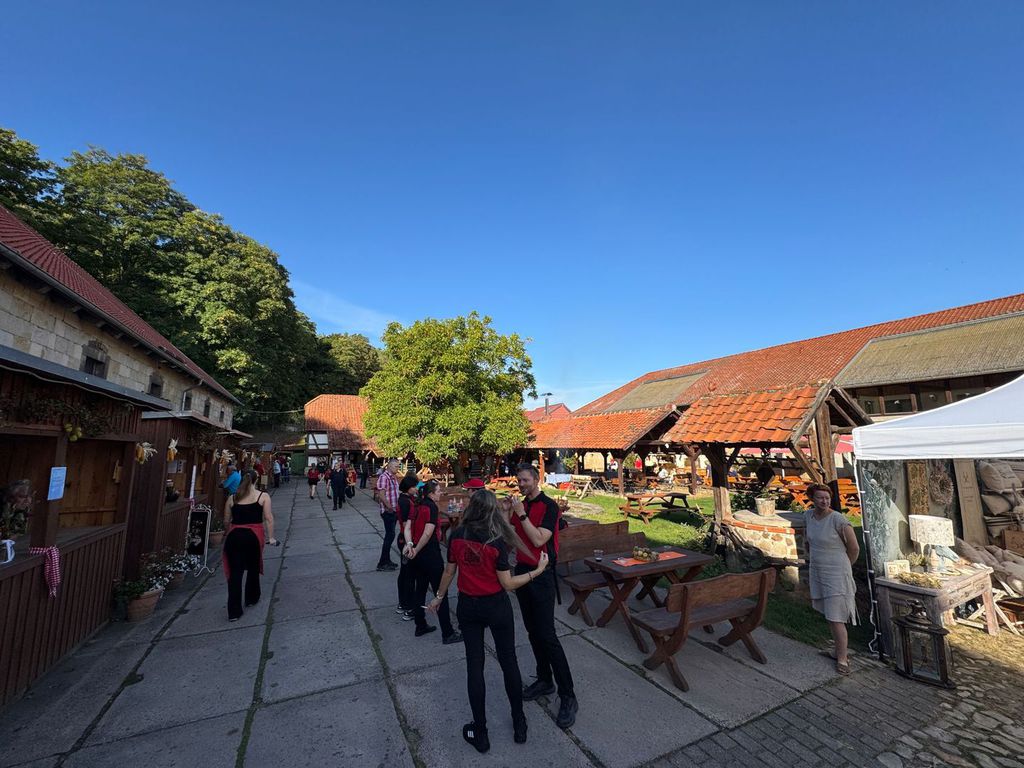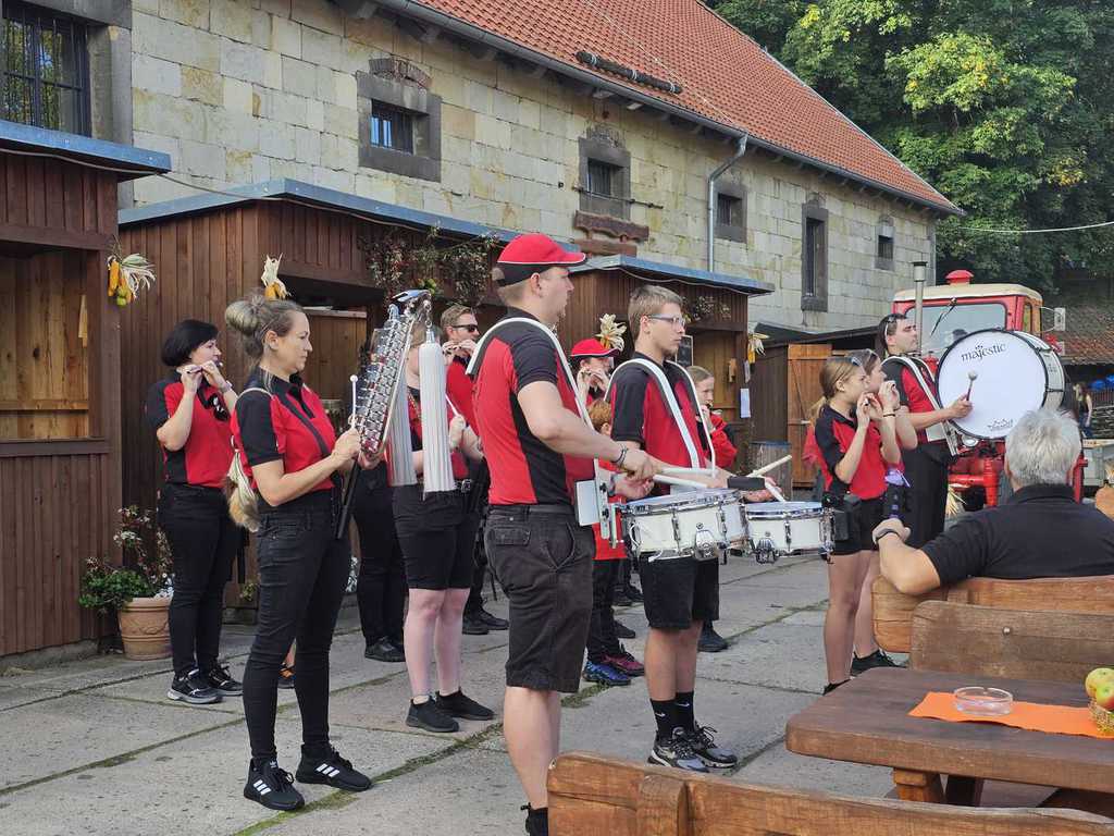Zum Erntedankfest holten wir mit den Langensteinern die Erntekrone an der Kapelle in Langenstein ab. Mit einem kleinen Umzug durch den Ort ging es für uns zum Schäferhof, wo der Erntedankmarkt statt fand.