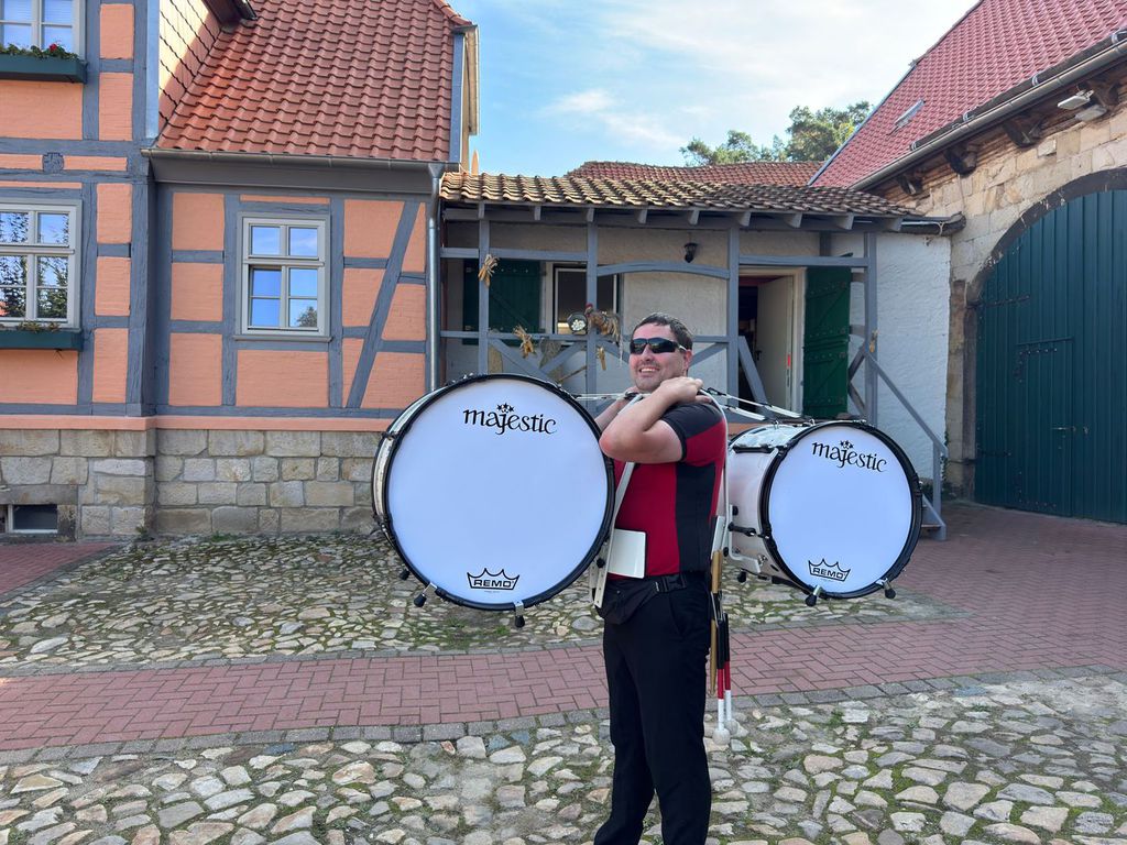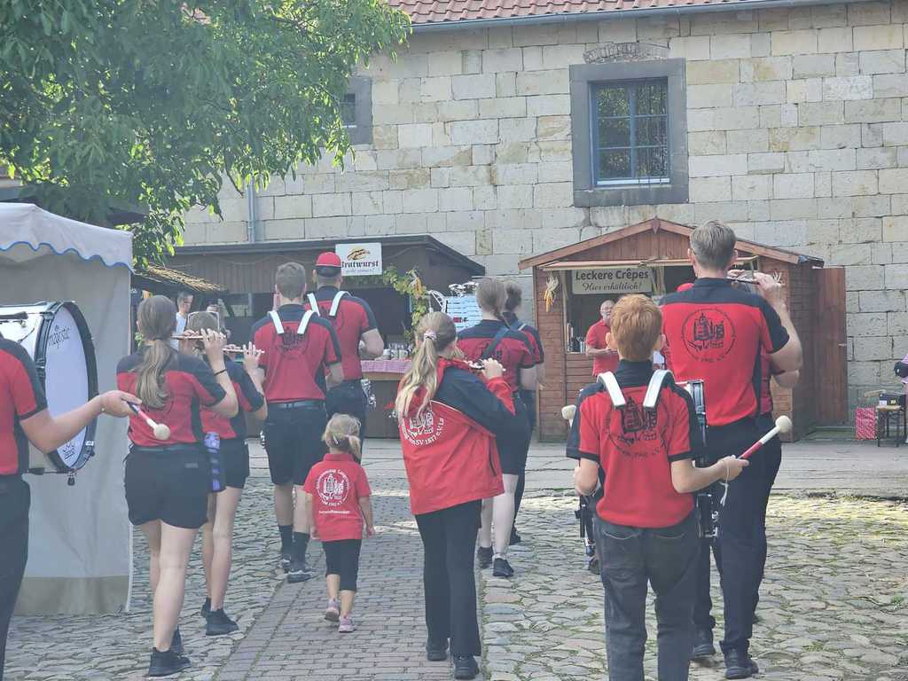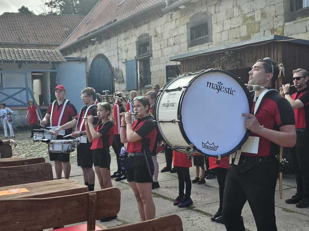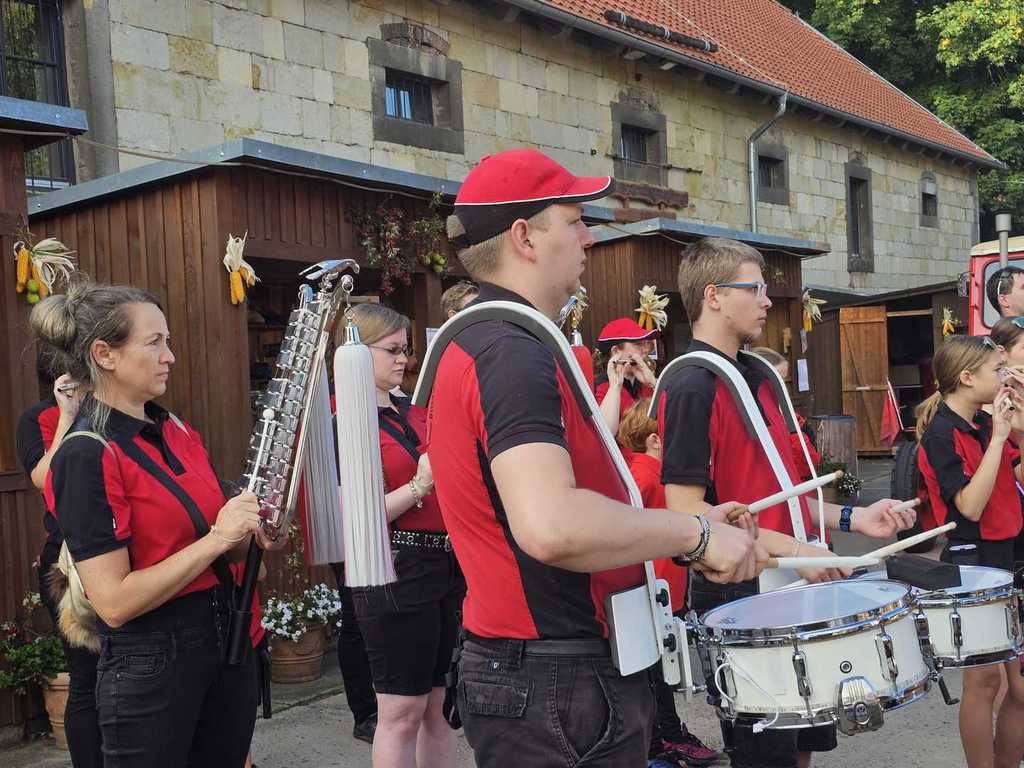 Zum Erntedankfest holten wir mit den Langensteinern die Erntekrone an der Kapelle in Langenstein ab. Mit einem kleinen Umzug durch den Ort ging es für uns zum Schäferhof, wo der Erntedankmarkt statt fand.