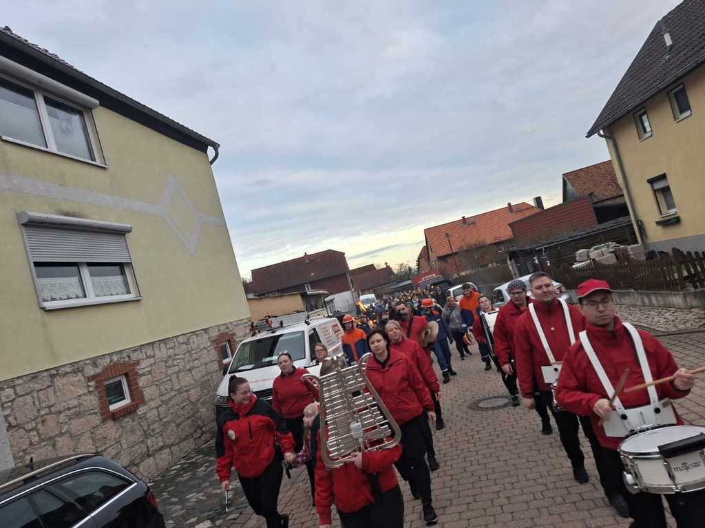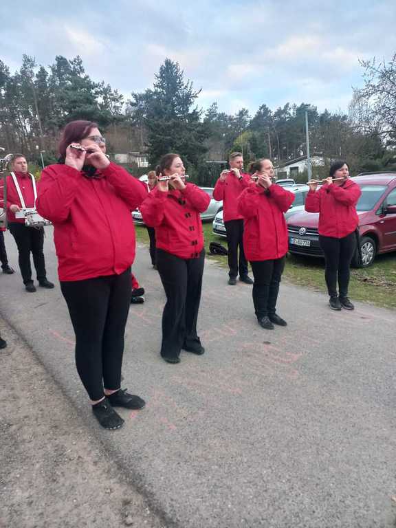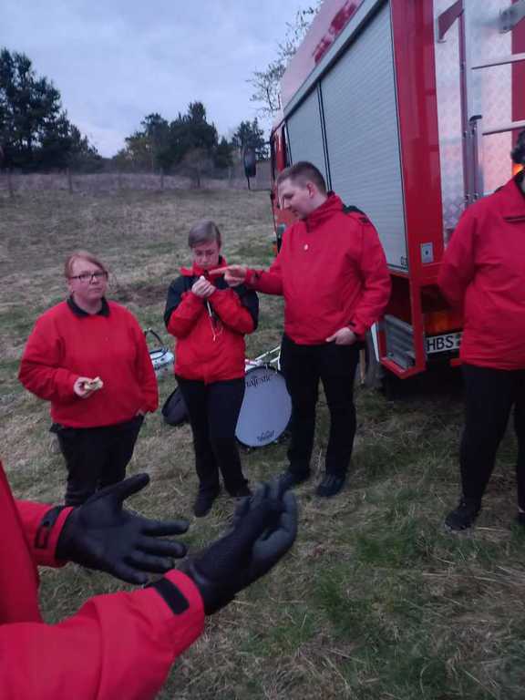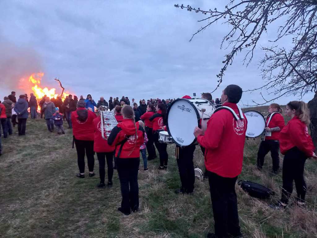 Am Gründonnerstag fuhren wir nach Sargstedt und marschierten dort von der Feuerwehr aus gemeinsam mit den Bewohnern und Gästen durch den Ort zum Feuer.