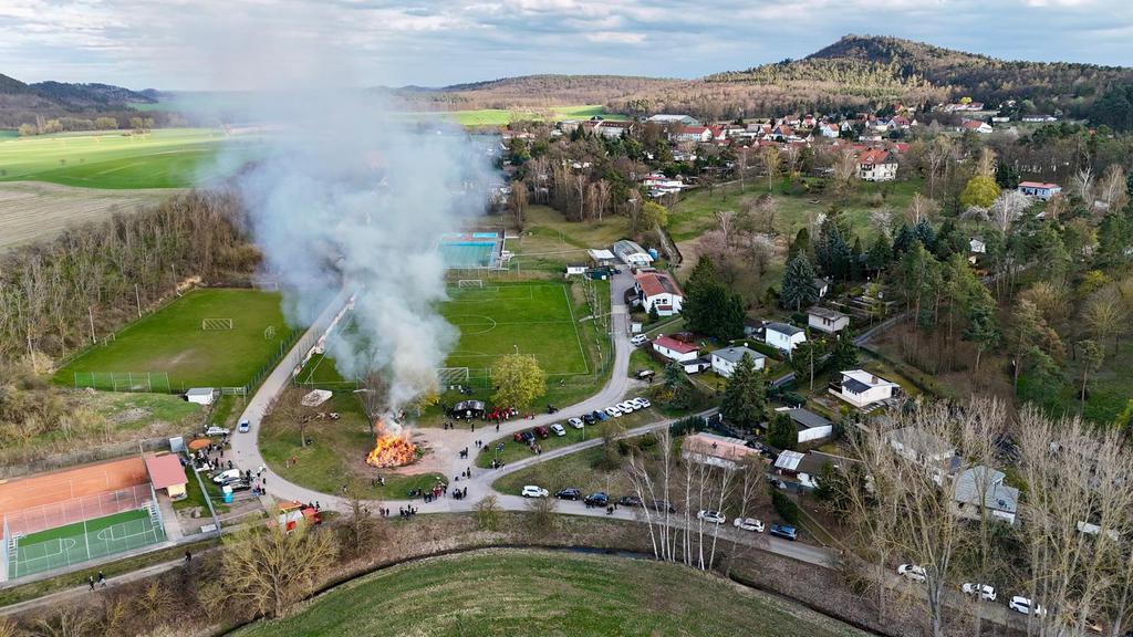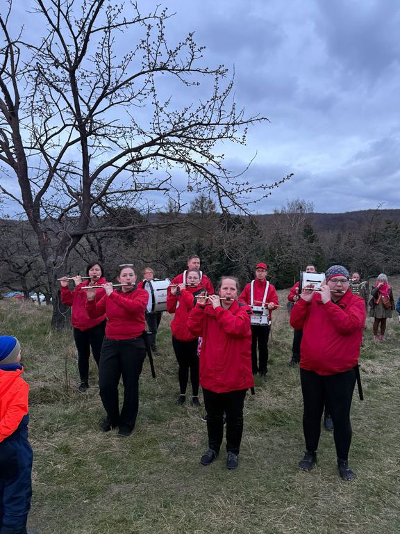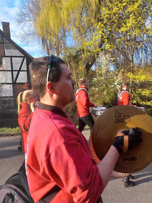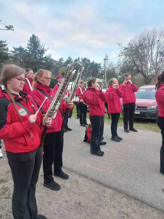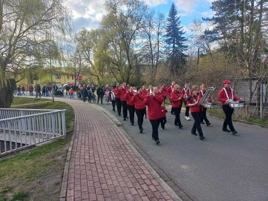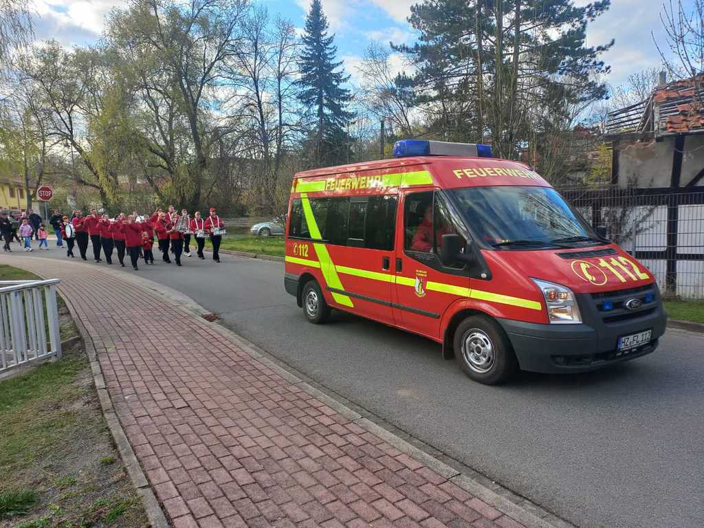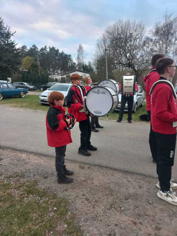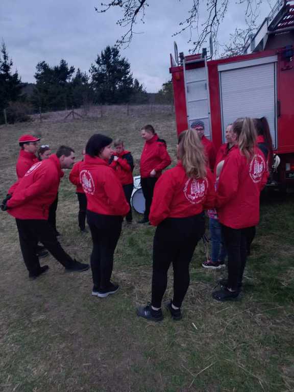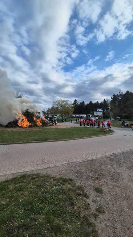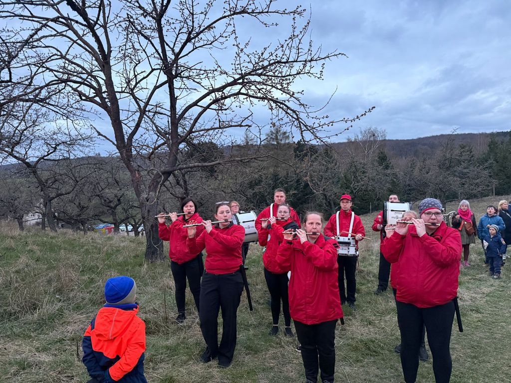 Karsamstag begleiteten wir die Langensteiner vom Schmiedeplatz in Langenstein aus zum Sportplatz, wo mit unsere Ankunft das Feuer entzündet wurde.