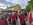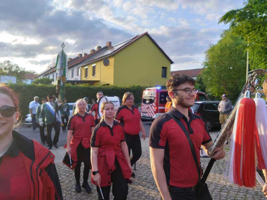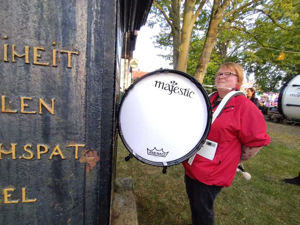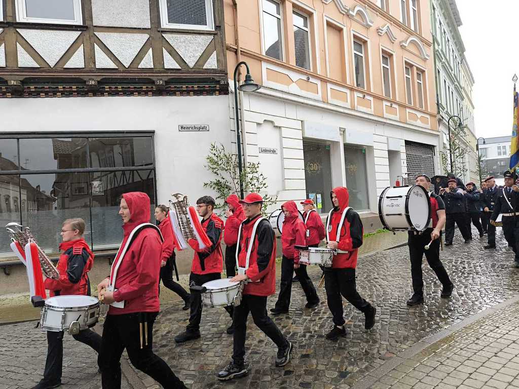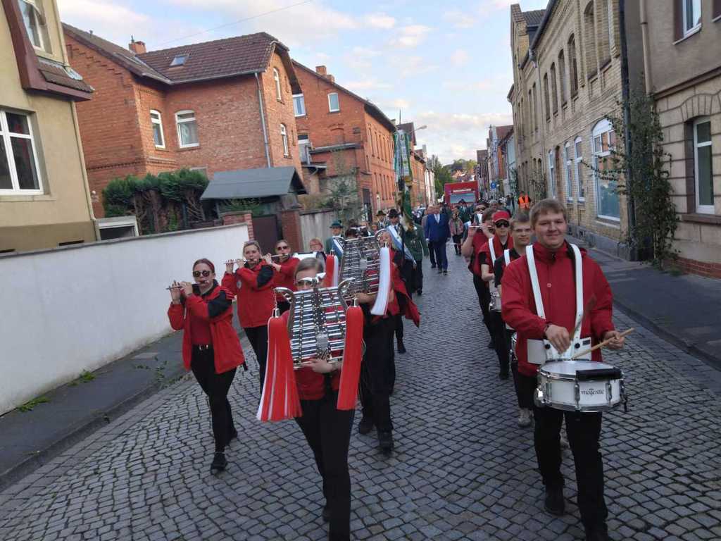 auf dem Marktplatz und marschierten gemeinsam zum Festplatz bei gutem Wetter.