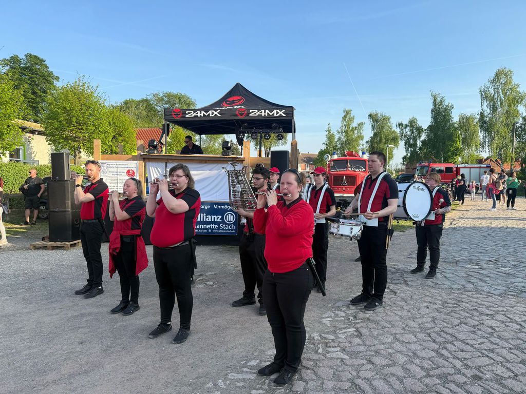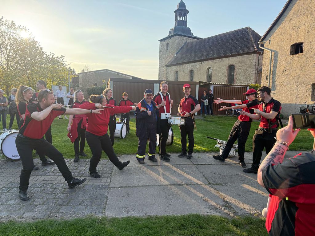 durch den Ort. Anschließend spielten wir, nach einer kleinen Stärkung, für die Gäste noch ein paar Lieder, bevor es zur 2. Walpurgisfeier an diesem Abend ging.