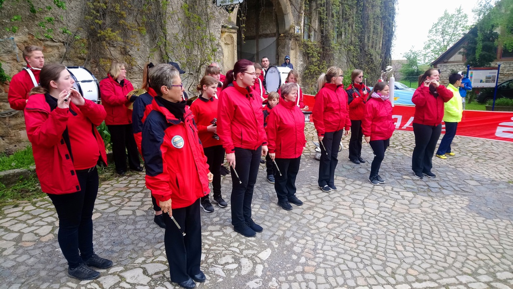 Nach dem Startschuss der Schlanstedter Schützen begleitete unser "Muss i denn" die Läufer aus der Burg und auf den Weg des Huyburgenlaufs.