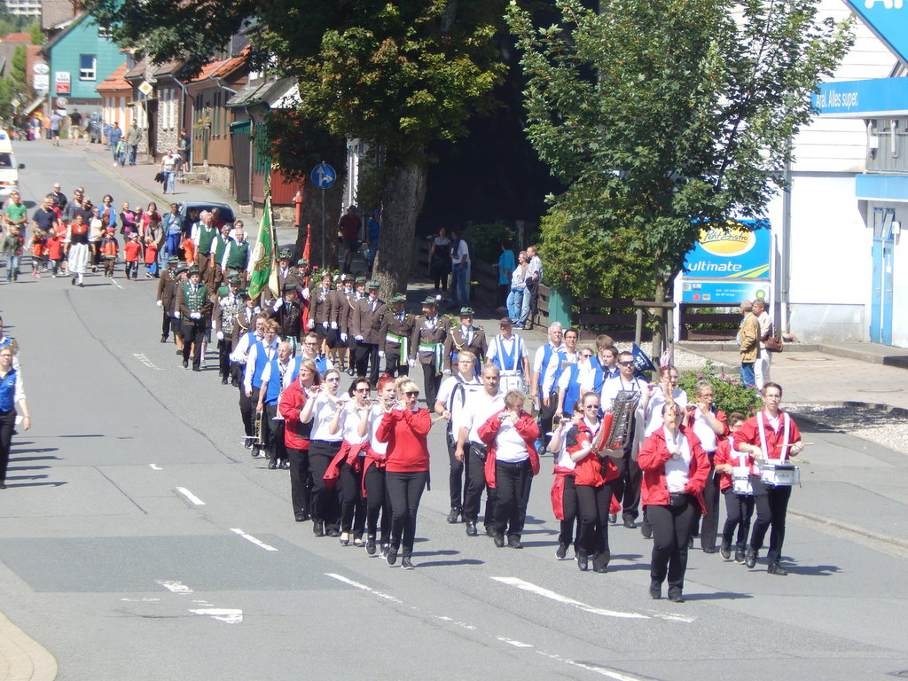 Seit einigen Jahren zählt das Schützenfest Braunlage zu einem unserer Stammauftritte. Gern nehmen wir den Weg auf uns und begleiten den Umzug durch den Ort. Nicht so gern haben wir den Anstieg zum Festplatz, denn kurz vor Ende des Umzuges steht ein meterweiter Berg vor uns, den wir erklimmen müssen. Oben angekommen verschnaufen wir kraftig mit hochroten Köpfen und erholen uns bei dem reichhaltigen kulinarischen Angeboten.